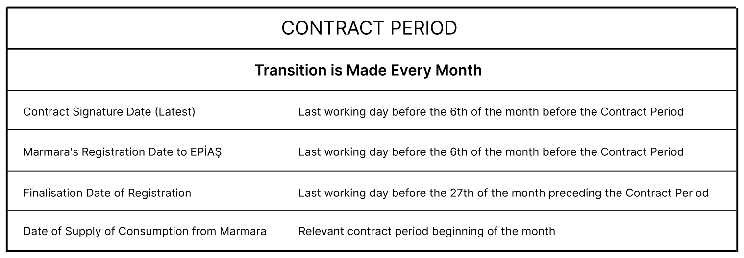 In accordance with the legislation, eligible consumers can become Marmara Elektrik customers at the beginning of each month. For this purpose, the transactions must be completed at the times specified below.